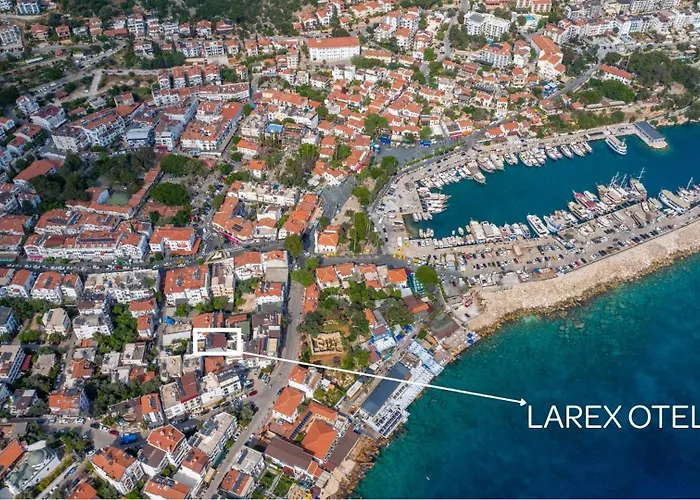 A Kasi Állami Kórház csupán 6 percnyi sétára található a hoteltől, az olyan természeti látnivalók pedig, mint a Hidayet koyu, körülbelül 2 km-re vannak. A Kasi marina egy 5 perces sétára fekszik. Az Incebogaz Cinar Beach 20 perces sétával elérhető. A Kaş városi Larex Pansiyon egy 550 méteres távolságra található a Kral Mezari, és csak lépésekre a Limangazi beach servis buszmegálló.